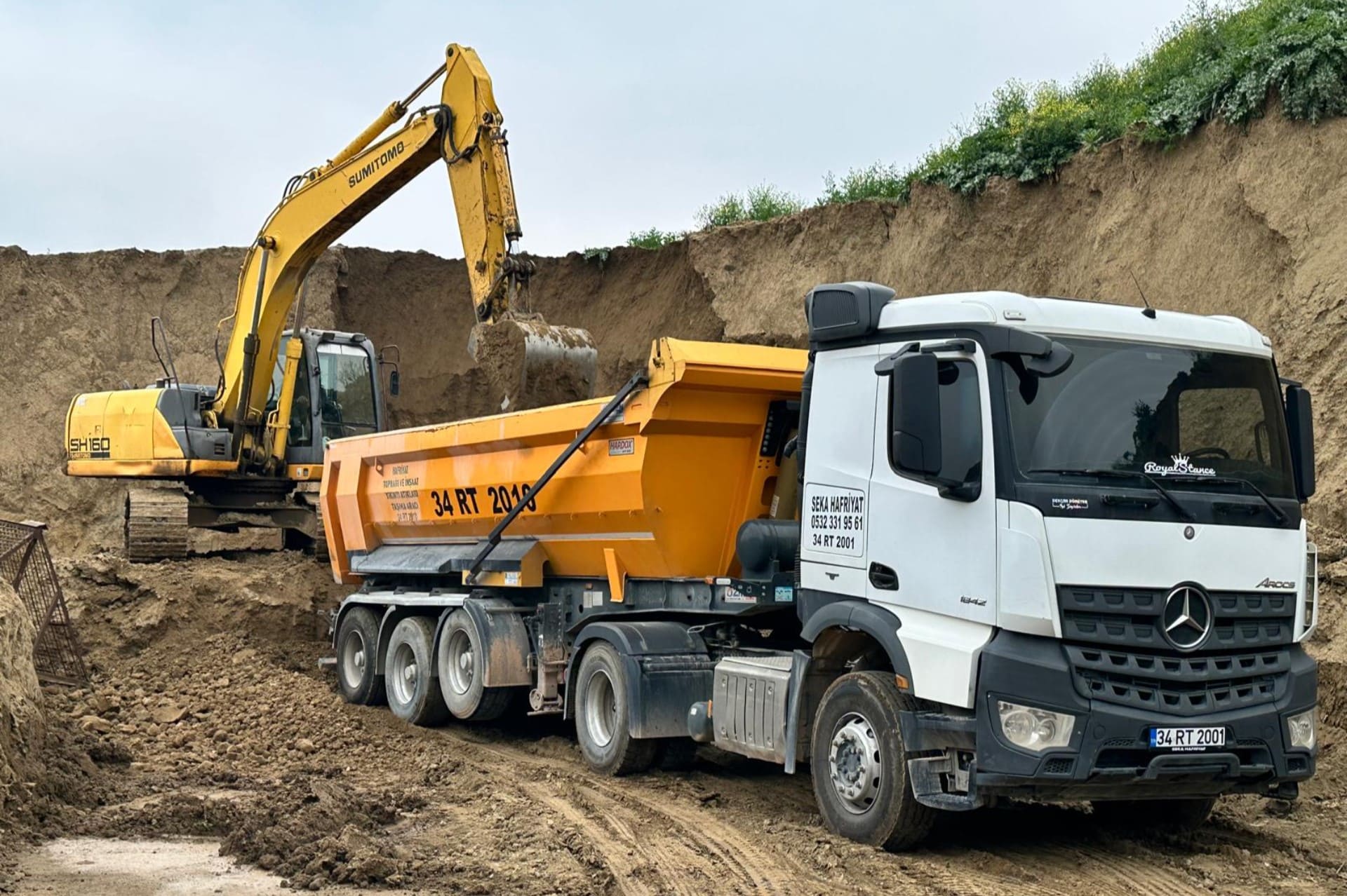 (6 adet Mercedes Arocs kamyonlarımızla hızlı ve güvenli taşıma)İnşaat öncesi zemin hazırlığı